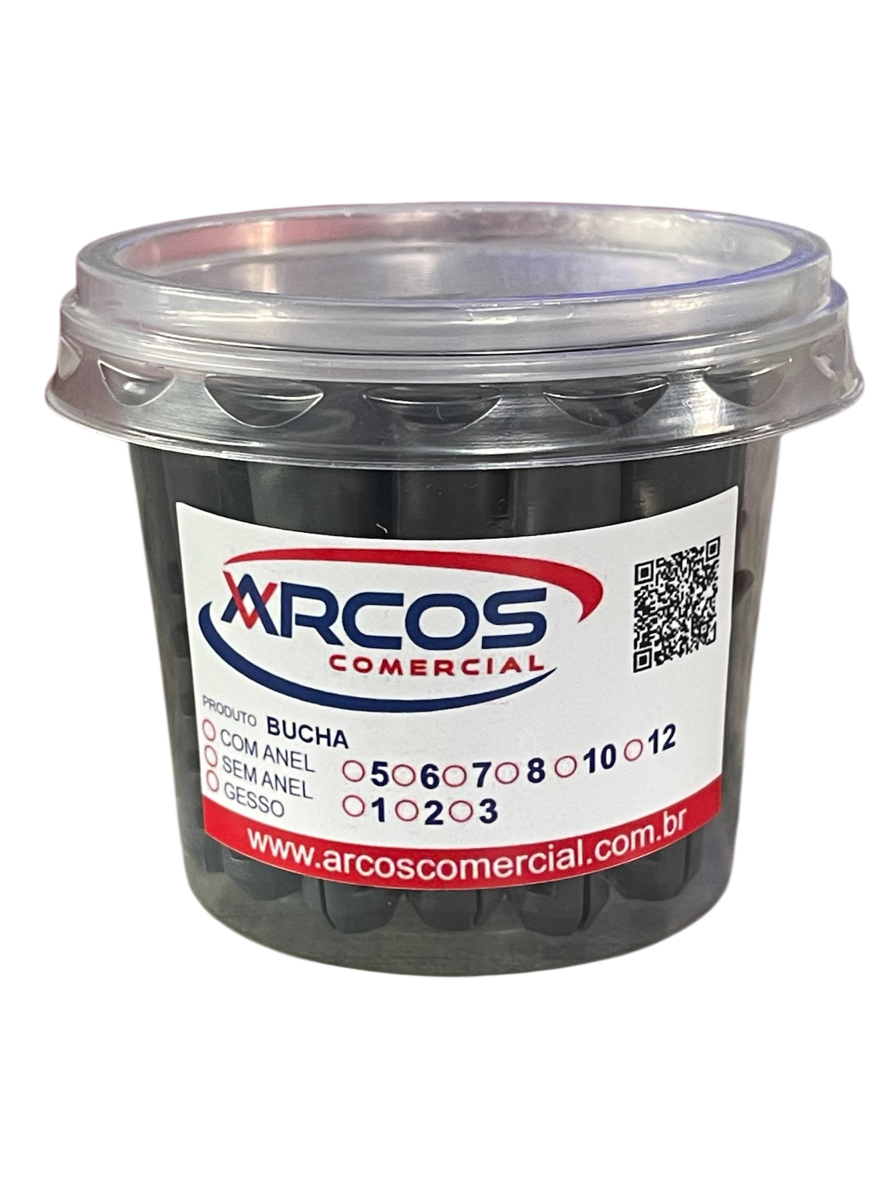 Potes de 140ml com aproximadamente 25 peças de buchas de 10mm com e sem anel.